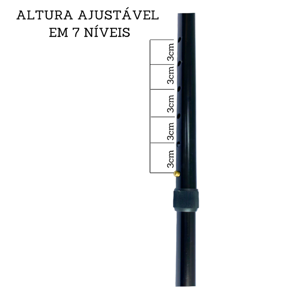 Alumínio anodizado; Tubo de Aço; Arruela; Polipropileno; Pino;